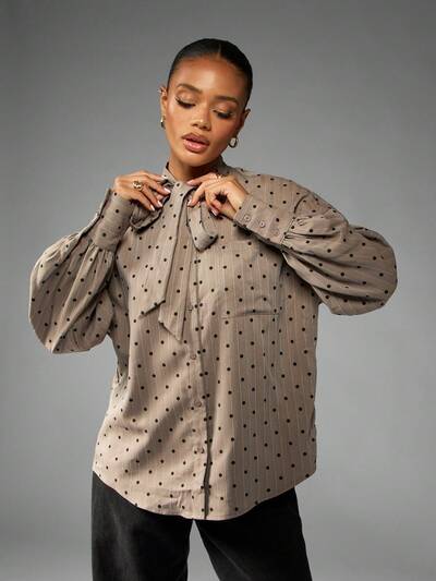 AiiRZ Camicia bianca elegante e classica con maniche lunghe, collo con fiocco, bottoni anteriori, stile professionale da ufficio, con stampa a pois oversize, adatta per l'autunno e l'inverno
