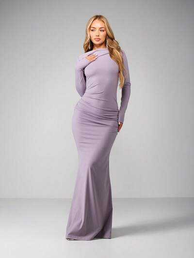 AiiRZ Elegante abito midi aderente con spalle scoperte, maniche lunghe, per feste, eventi serali e occasioni speciali, in tessuto elasticizzato e arricciato, adatto per matrimoni e cerimonie