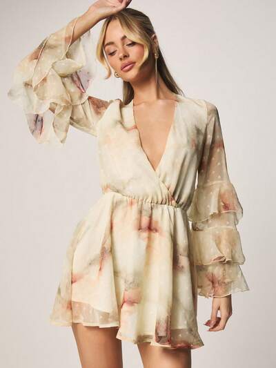 MISSGUIDED Mini abito floreale avvolgente con maniche a balze