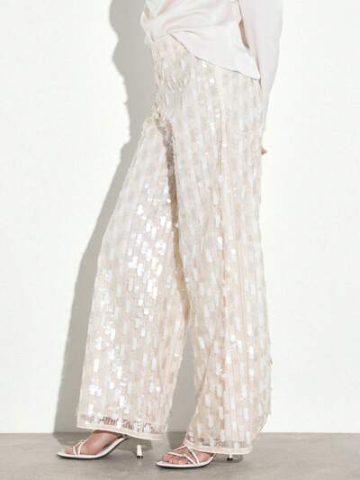 KSTM Pantaloni larghi da donna con vita alta, con paillettes, vita elastica e decorazioni scintillanti, adatti per eventi seraliCodice: SAVE25