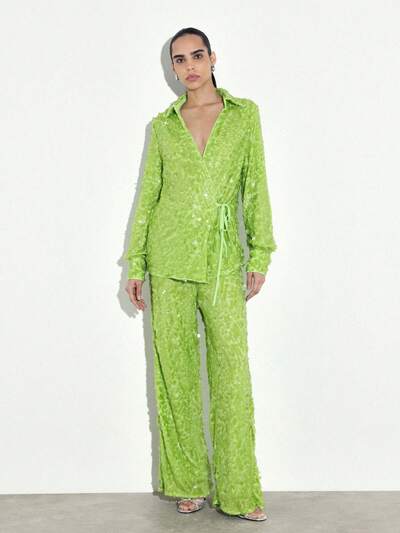 KSTM Elegante blusa avvolgente con applicazione di fiori tridimensionali e chiusura laterale annodata, adatta per occasioni specialiCodice: SAVE25