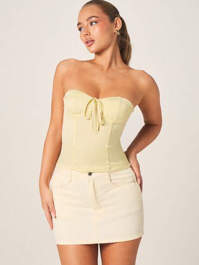 MISSGUIDED Top corsetto giallo con lacci anteriori e scollo a cuore