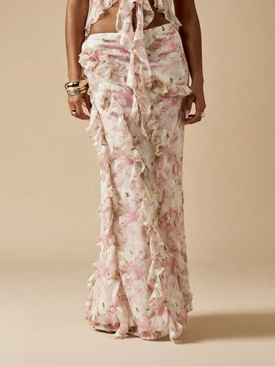 MISSGUIDED Gonna lunga in chiffon con balze a balze e stampa floreale elegante-50%