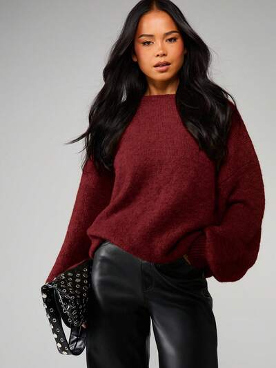 MISSGUIDED Maglione oversize con scollo rotondo e lavorazione a maglia pelosa