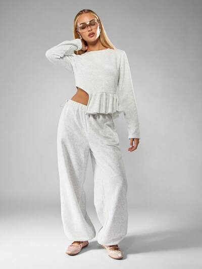 MISSGUIDED Completo top corto con volant e pantaloni a gamba larga-50%