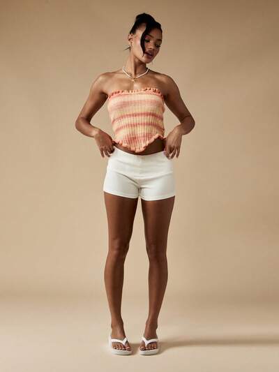 MISSGUIDED Pantaloncini a coste a righe con risvolto