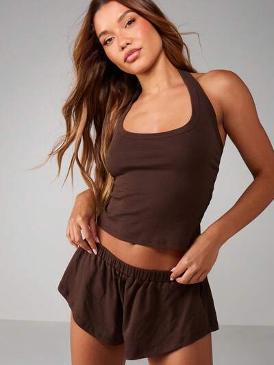 MISSGUIDED Completo composto da canotta e shorts con bordo in pizzo traforato.