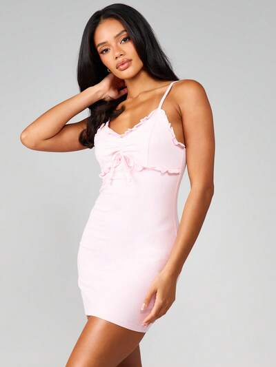 MISSGUIDED Miniabito con scollo a V e volant e fiocco-45%