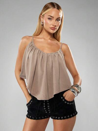 MISSGUIDED Canotta drappeggiata in raso con scollo arricciato-50%