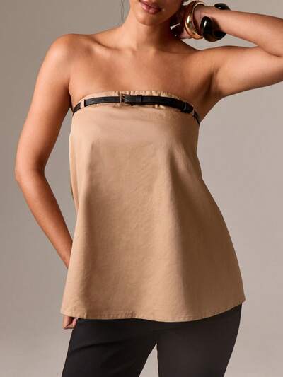 AiiRZ Top bandeau senza spalline con cintura nera, dettaglio estivo da spiaggia, top elegante da sera, design minimalista casual
