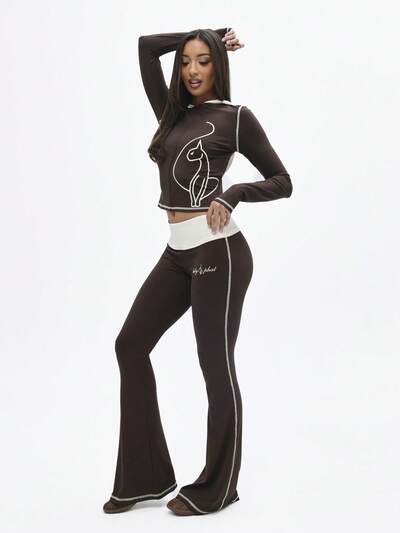 BABYPHAT Leggings a coste a zampa d'elefante con vita in contrasto rosa shocking e dettagli a righe laterali, pantaloni casual da relax con testo ricamato