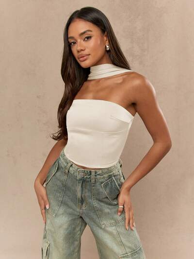 MISSGUIDED Top bandeau con dettagli al collo e sulla schiena in raso