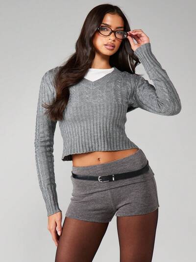 MISSGUIDED Maglia a maniche lunghe con scollo a V in maglia a trecce-45%