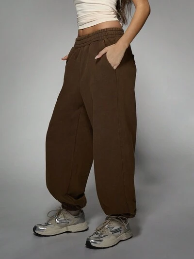 MISSGUIDED Pantaloni della tuta oversize in pile spesso con coulisse e polsini-35%