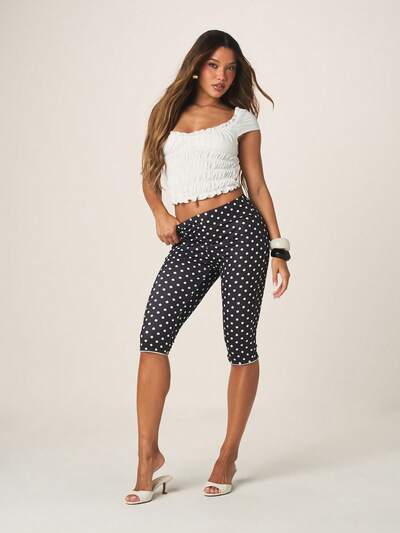 MISSGUIDED Leggings corti a vita alta a pois