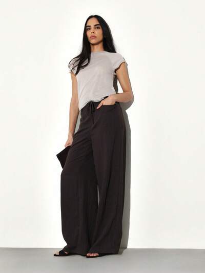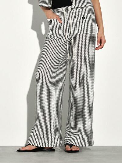KSTM Pantaloni a gamba ampia in maglia a righe con dettagli a bottoni e vestibilità rilassata per comfort casual e stile versatileCodice: SAVE25