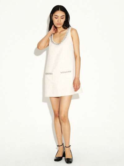 KSTM Elegante abito mini senza maniche con decorazioni di gioielli, dettagli in cristallo, scollo a barca, adatto per feste, eventi serali e occasioni speciali