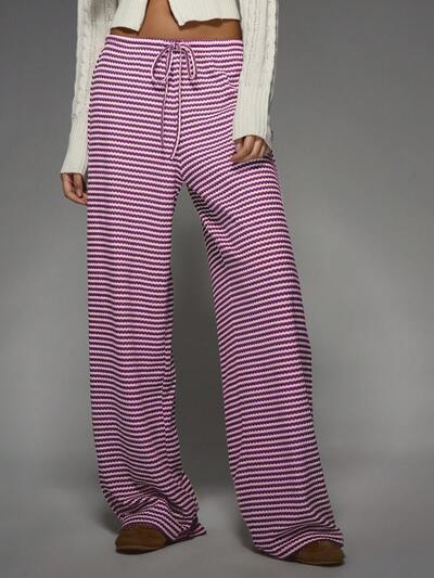 MISSGUIDED Pantaloni palazzo a gamba larga con coulisse a righe retrò boho