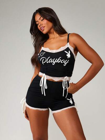 Missguided x Playboy Top con pizzo e lacci laterali-45%