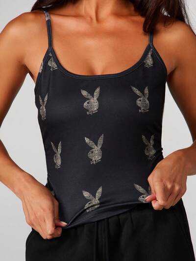 Missguided x Playboy Canotta nera con stampa coniglietto-45%