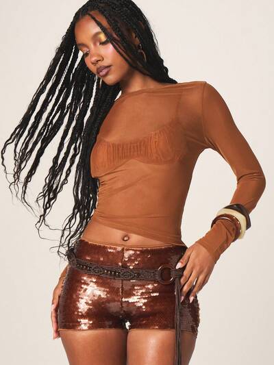 MISSGUIDED Top corto a coste a maniche lunghe con frange