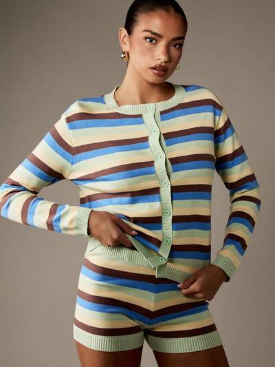 MISSGUIDED Cardigan a righe con bottoni frontali e finiture a coste