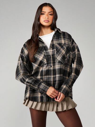 MISSGUIDED Blusa oversize a quadri con bottoni e maniche lunghe-45%