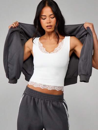 MISSGUIDED Canotta senza maniche con scollo a barchetta e finiture in pizzo9,28 USD10,92 USD