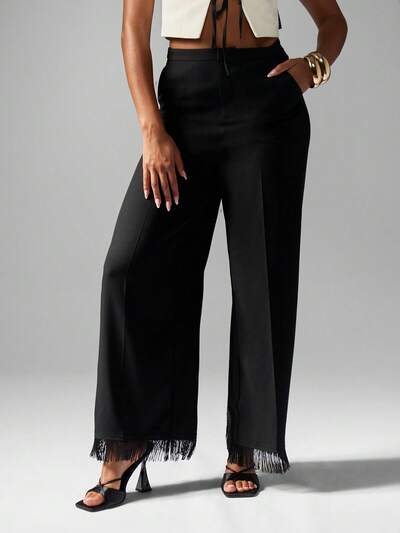 MISSGUIDED Pantaloni sartoriali a gamba larga con orlo a frange-40%