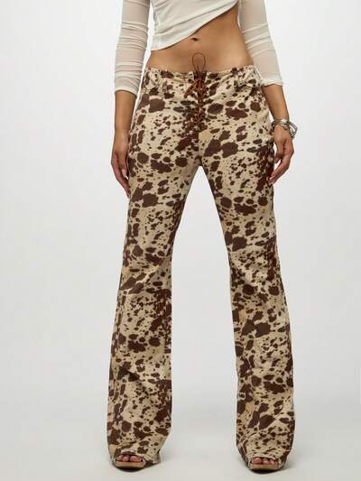 SUMWON WOMEN Jeans a zampa con stampa mucca, vita alta, stile western boho, con lacci anteriori, pantaloni in denim stile campana, moda autunno inverno, stile retrò Y2KCodice: SAVE25