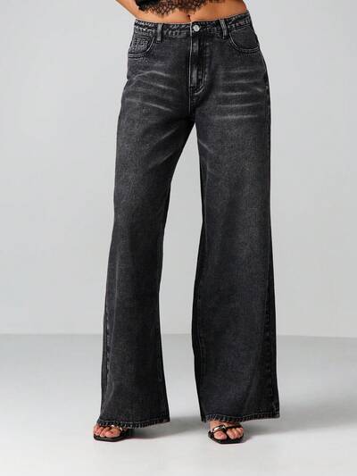 KIZN Jeans ampi e larghi con strappi, lavaggio vintage sporco, vita alta, gamba dritta, stile palazzoCodice: SAVE25