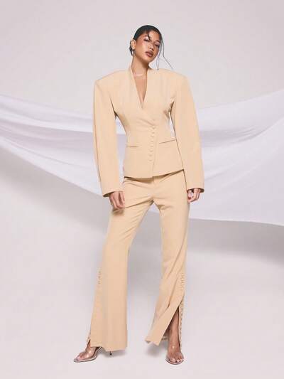 KIZN Pantaloni da donna a zampa d'elefante sartoriali con dettagli a bottoni per abiti da lavoro d'ufficio e formaliCodice: SAVE25
