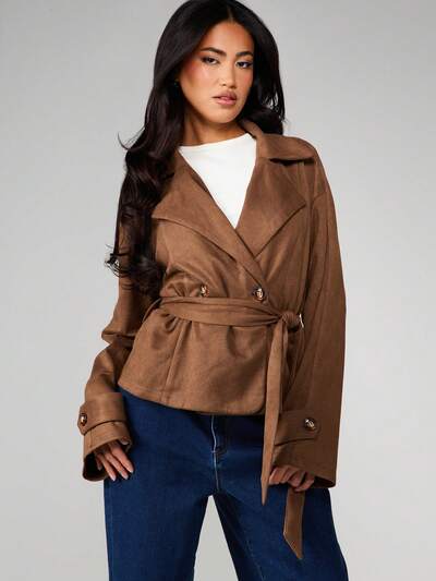 MISSGUIDED オーバーサイズカラー、タイアップウエスト、長袖カジュアルジャケット、トレンチコート-40%