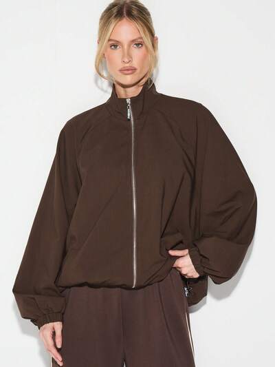 KIZN 秋冬カジュアルアウター用 オーバーサイズ ブラウンジップアップトラックジャケット スタンドカラー エラスティックカフス-30%