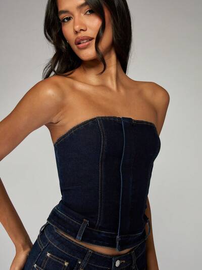 MISSGUIDED コントラストステッチ入りフィットストラップレスデニムバンドゥトップ-50%