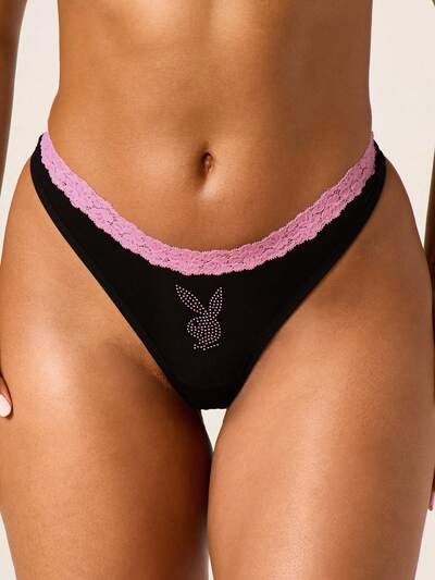 Missguided x Playboy レーストリム付きラインストーンバニーTバック-10%