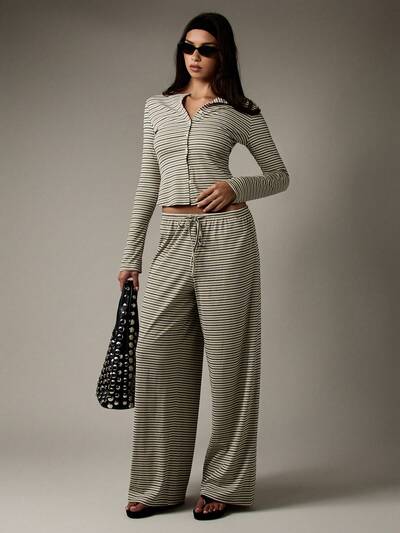 MISSGUIDED ボタン留めリブ編みストライプワイドレッグツーピース-45%