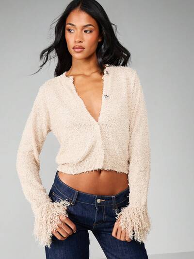 MISSGUIDED ふわふわボタンフロントクロップドカーディガン-40%