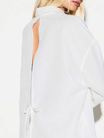 KIZN シアサッカーストライプ ボタンダウン カラー 長袖 オープンバック リボン ディテール リラックスフィット春夏ブラウス シャツ カジュアル オフィス ワークウェア 軽量-10%