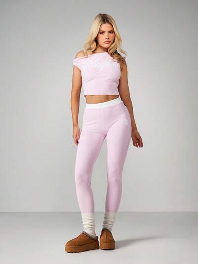 Missguided x Playboy ピンクのリブ編みオフショルダークロップトップとレギンス-50%