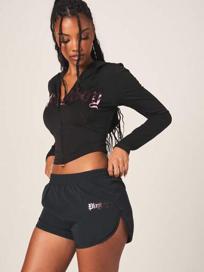 Missguided x Playboy ロゴプリント入りハイライズスポーツショーツコード: PAYDAY20