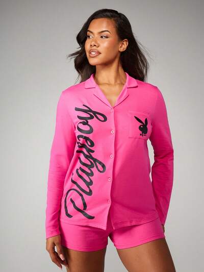 Missguided x Playboy ボタンダウンカラーシャツとフルレングスパンツのパジャマセット-40%
