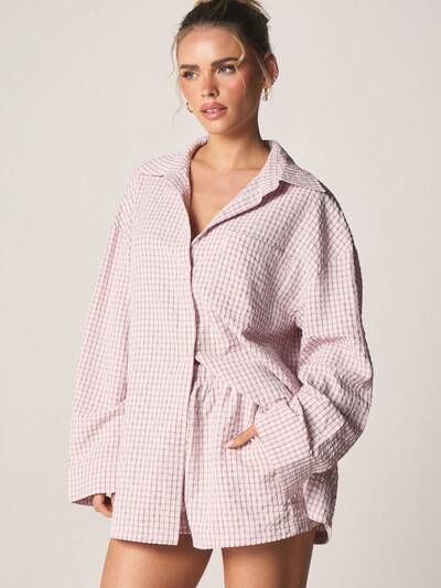 MISSGUIDED オーバーサイズチェック柄ボタンダウンシャツ(肩パッド付き)-35%