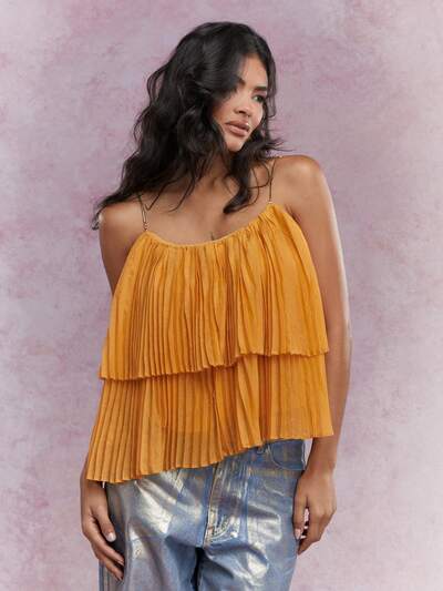 MISSGUIDED ボヘミアン調メタルストラップ ティアードフリルキャミソールトップ