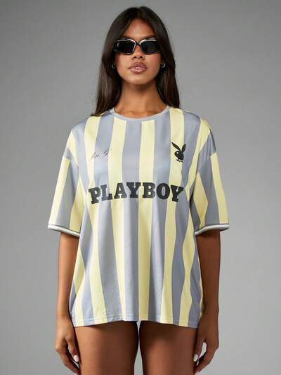 Missguided x Playboy オーバーサイズジャージーレトロストライプTシャツ-45%