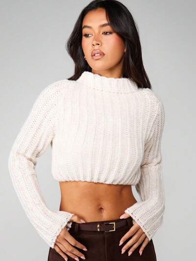 MISSGUIDED ケーブルニットタートルネッククロップセーター-50%