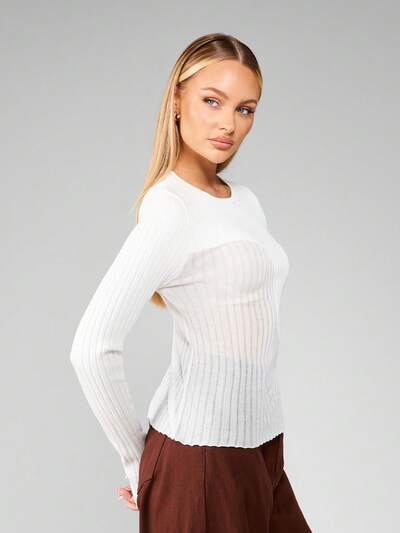 MISSGUIDED テクスチャードオフショルダーロングスリーブニットクロップトップ-40%