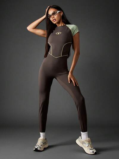 Missguided x Playboy コントラストスリーブとロゴが特徴のフィット感のあるジャンプスーツ-45%