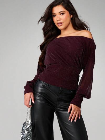 MISSGUIDED オフショルダーグリッターロングスリーブトップス-45%