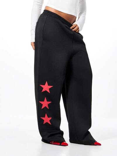 SUMWON WOMEN オーバーサイズスター ディテール ジョガーパンツ スウェットパンツ ラウンジパンツ 快適 ドローストリング ウエスト カジュアル ストリートウェア ワイドレッグ ズボン-10%